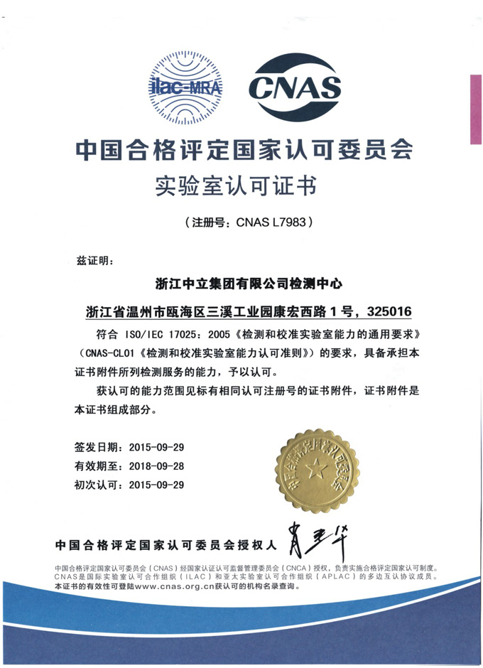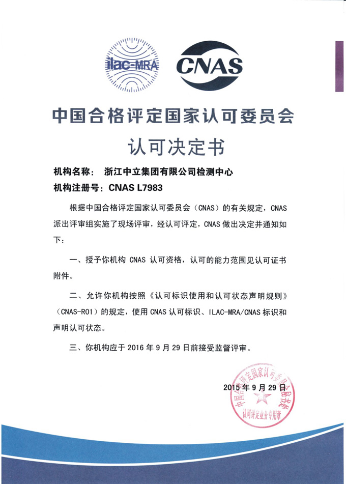 集團(tuán)總經(jīng)理詹顯光表示,今后浙江中立集團(tuán)有限公司檢測(cè)中心將以通過CNAS認(rèn)可為契機(jī),不斷提高檢測(cè)水平,嚴(yán)格檢驗(yàn)操作,確保產(chǎn)品質(zhì)量,提升國際美譽(yù)度。